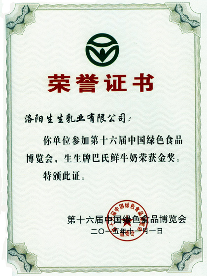 生生乳業(yè)代表河南洛陽(yáng)展團(tuán)參加在西安舉辦的第十六屆中國(guó)綠色食品博覽會(huì),生生牛奶在展會(huì)上獲得領(lǐng)導(dǎo)的好評(píng)和消費(fèi)者們的贊譽(yù),生生巴氏鮮牛奶榮獲綠博會(huì)金獎(jiǎng)稱號(hào)。